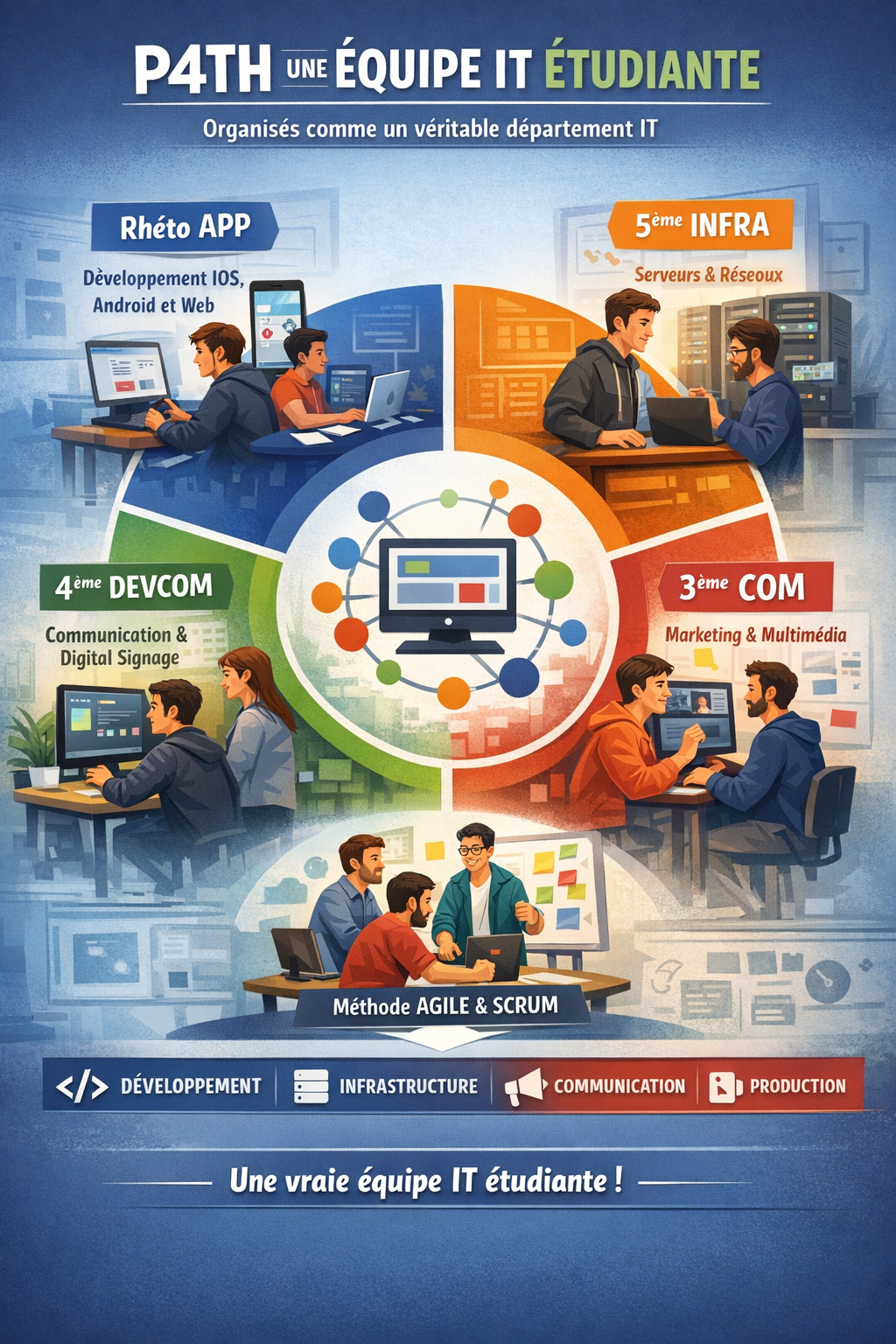 👉 En résumé, P4TH forme des étudiants à l’informatique en reproduisant l’organisation d’un vrai service IT : développement, infrastructure, communication et production de contenu travaillent main dans la main.