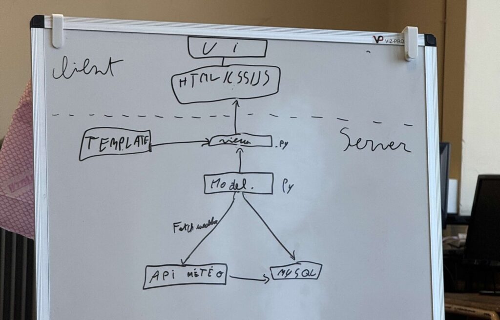 Ici, reverse engineering, création d’un diagramme représentant le fonctionnement du framework utilisé. Les interactions avec l’Interface utilisation (coté client) et le serveur (MVC) incluant un appel API pour les données avec stockage en DB (mySql)